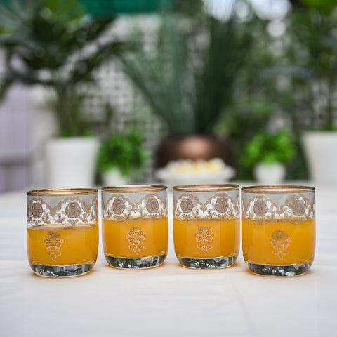 Set Includes: 4 glasses accented with 24-carat pure gold