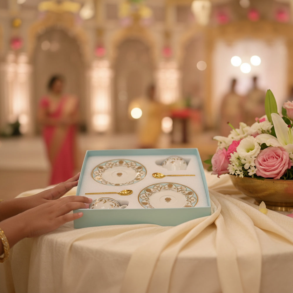 Set Includes: 2 Cup & Saucers with 24-carat pure gold & 2 Spoons
